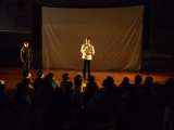 影絵の劇団「かかし座」がきて、体験授業を行いました。 身体の一部をつかった表現...