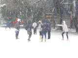 中休みの風景です。 降りしきる雪の中、みんなで雪合戦をしました。 手は冷たい...