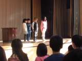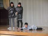 児童朝会で保健給食委員会が発表を行いました。 風邪の予防について寸劇を演じまし...