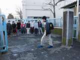 あいさつキッズの元気な声が校門に響きます。 子どもたちは寒い中急いで通り抜けます...