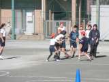 体育の時間です。 ポートボールを楽しんでいました。 日差しが温かくなりました...