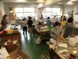 今日の3・4時間目の図工室では、3年3組が木工作「のこぎりひいて、ザク、ザク、...