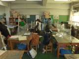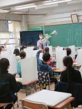 27日(金)に2年1組で、研究授業を行いました。 空き箱やゴムなどの素材を用いて...