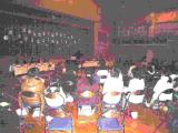 体育館にも多くの店ができました。ポスターを持って、校舎内や運動場にいるお客さんを...