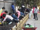 エコグリーン委員会の子どもたちが、東側の花壇に白や黄色のパンジーを植えました。 ...