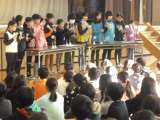 児童朝会で「バンブーグラス・フィールド・ハーモニー」のミニコンサートを行いました...