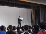 児童朝会に桜丘中学校生徒会のみなさんが来て、 ハンドベルの演奏を聞かせてくれま...