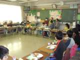 今日はお別れ給食です。笹の子班で仲良く給食を食べました。 6年生と会食する下級...