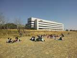 多摩川の土手で、お昼のお弁当です。風がなく、暖かく気持ちのいいお天気です。