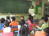 2年生に案内されて校舎内を見学しています。 校長室にも訪ねてきてくれました。 ...