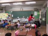 初めての給食です。 自分たちで配膳します。 白衣を着るにも時間がかかります。...