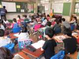 中休みの様子です。 外は雨で校庭では遊べません。 学校図書館にはたくさんの子...