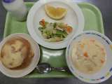 ◆本日の献立 *ビスキュイパン *牛乳 *クリームスープ *ツナサラダ ...