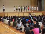 プール開き朝会を行いました。 体育委員がプール指導の注意点をロールプレイで説明...