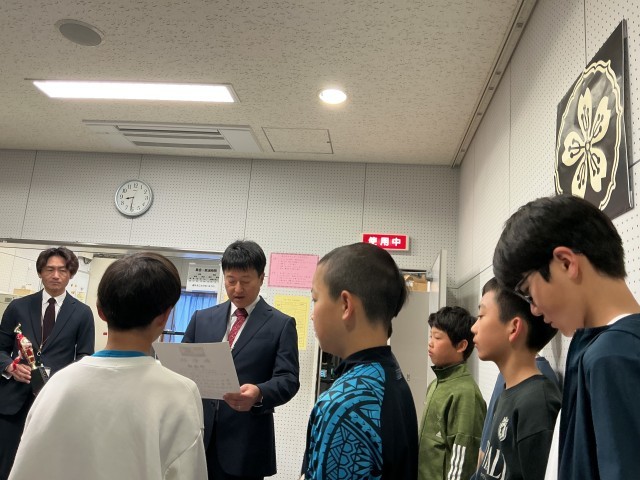 校長先生から、頑張った友達の紹介がありました。校長先生から賞状を手渡され、胸を張...