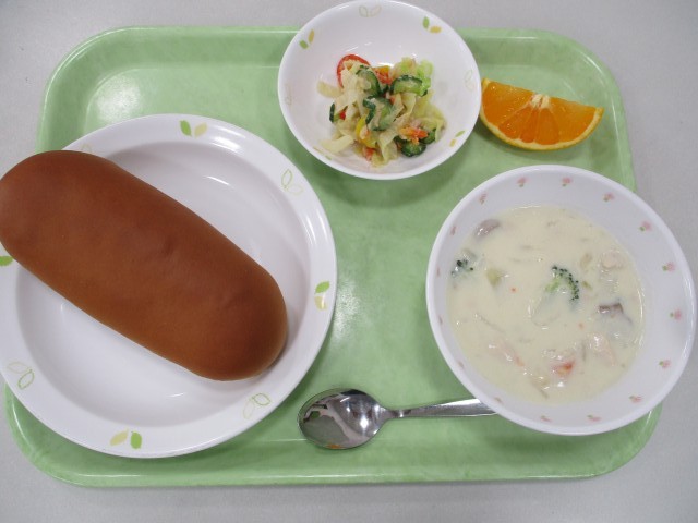 【今日の献立】・黒砂糖パン・さつまいもとひよこ豆のシチュー・ツナ入りカラフルサラ...