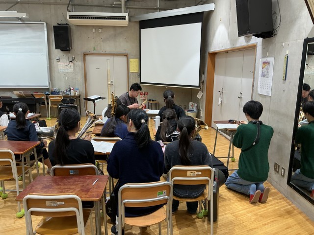 ブラスバンドクラブでは、音楽大学の学生が指導ボランティアに来てくれました。