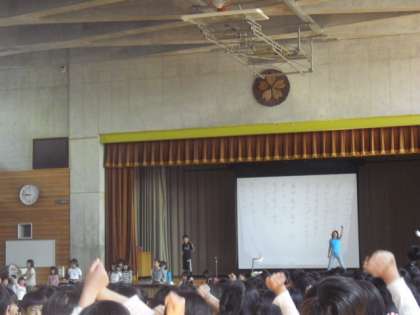 今回の音楽朝会では、運動会の歌「ゴーゴーゴー」の練習をしました。赤組が1番、白組が2番を歌います。それぞれの応援団団長もはじめのかけ声をかけ、歌を盛り上げました。