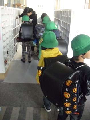 4月8日(火)1年生の学校生活が本格的にスタートしました。大きなランドセルを背負って登校した1年生は、靴箱から6年生のお兄さんお姉さんに迎えられて、朝のしたくを一緒にしました。「早く外でいっぱい遊びたい」と新しい生活にわくわくしている様子でした。帰りは集団下校で、コース別に通学路を確認しながら家に戻りました。