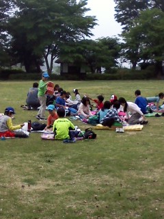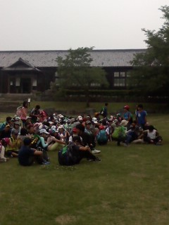 民俗資料館に到着しました。早速、お弁当です。行動班ごとにまとまって食べています。