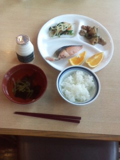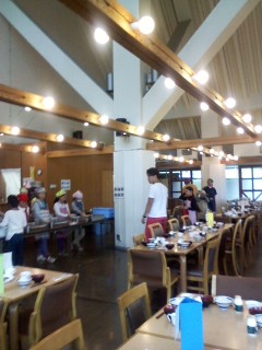 天気は相変わらず、ポツリと雨が落ちたり落ちなかったりです。さあ、楽しみの朝食です。食事当番が準備を進めています。
