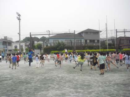 前回に引き続き、「ジンギスカン」のリズムに合わせたダンスを行いましたが、今回は前回よりもレベルアップした振り付けに挑戦をしました。右左の手足を組み替えながら踊る振り付けに少し苦戦しながらもたくさん体を動かしました。