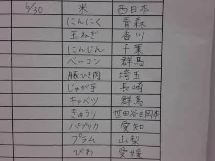 今日はセレクト給食です。プラムかびわ、事前に自分で選んだものをいただきます。プラムを選んだ人が540人、びわを選んだ人が288人と、約2/3の人がプラムを選びました。どちらも今しか食べられない果物なので、味わって食べてほしいと思います。