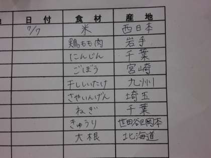 今日は七夕です。七夕汁には、そうめんと星形の麩が入っています。昔は悪いことが起きないようにという願いをこめて、7月7日には“さくべい”という食べ物を作って食べていたそうです。この“さくべい”とは小麦粉を練って紐状にしたものを、縄のように編んだお菓子です。やがて“さくべい”は“そうめん”へと変化し、七夕に食べるようになりました。