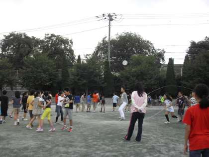 10月1日(水)朝、校庭にて花の子体力つくりを行いました。今日の内容は前回に引き続き長縄でした。5分間に何回飛べるのか、各クラスごとに記録を計ります。6年生は連合運動会に向けて休み時間にも練習をした成果を発揮し、記録を更新しました。他の学年も前回よりも記録を伸ばしたクラスが多いようで自分たちの成長を実感し、喜んでいました。