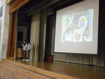 2月6日(金)朝、体育館にて児童集会を行いました。今日の内容はクラブの紹介でした。先日、運動系のクラブの紹介を行ったので、今日は文化系のクラブです。