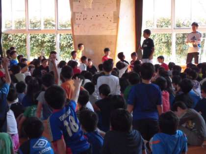 たくさんの子が手を挙げ、答えたそうにしていました。