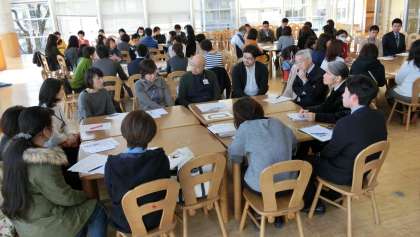 全学級が道徳の授業を公開し、授業終了後には、「育てようやりぬく心」をテーマに、保護者・地域の方と教員が学年ごとにテーブルを囲み、グループディスカッションを行いました。