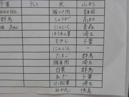 給食のビビンバは、豚ひき肉やぜんまい、たけのこなどを炒めたものと炒り卵をごはんに混ぜ、上にナムルをのせています。