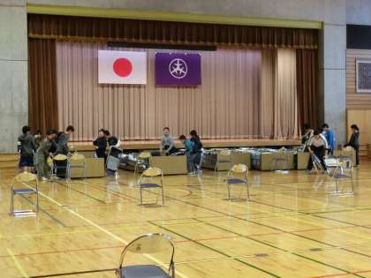 明日の式に備え、新6年生が登校し、式場の準備や、保護者の方に配る