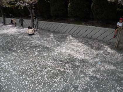 桜の花の多くは、残念ながら散ってしまいましたが、低学年の児童数名が