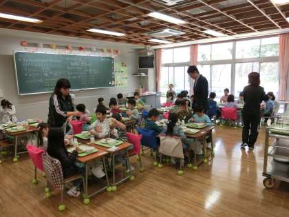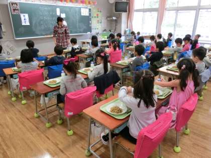 配膳を担任と専科の先生に手伝ってもらいましたが、