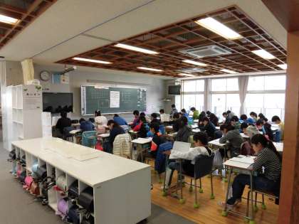 5・6年生は午前中、学習習得確認調査のテストを受けてます。