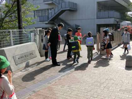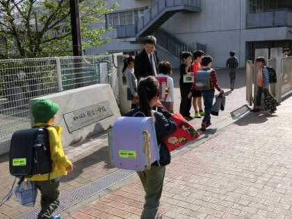 今朝も、登校してくる子供たちの”立ち止まってあいさつ”に
