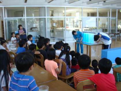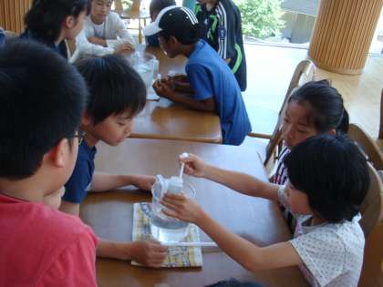 浄水場で行われている「ろ過」や「ちんでん」を実験装置を使って、
