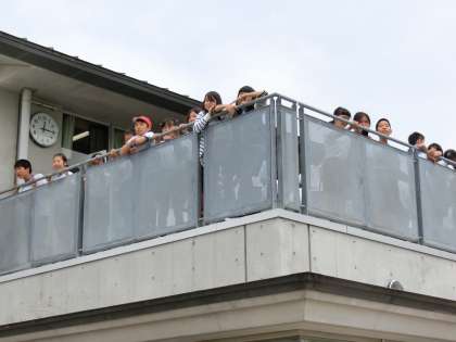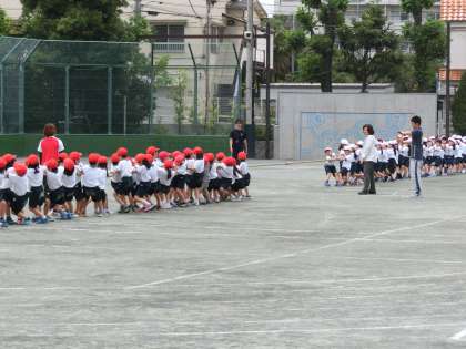 校庭では、2年生が全校競技の綱引きを練習しています。
