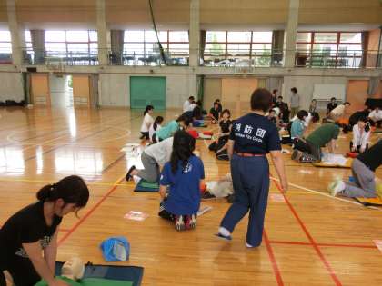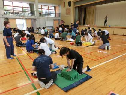 心肺蘇生や人工呼吸の実技訓練を受けました。