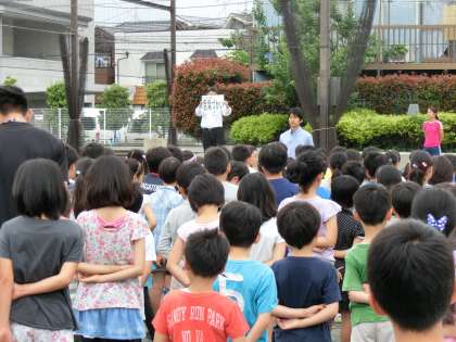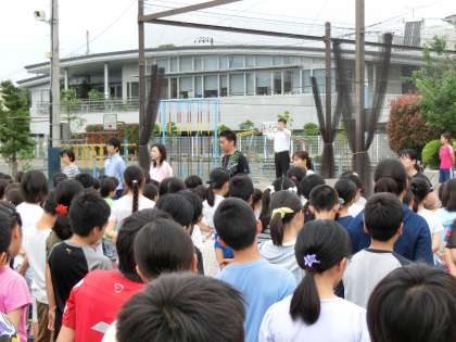 給食時間帯に1年生の教室を訪ね、「給食はどうですか。」と