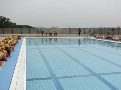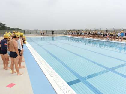 今シーズンお世話になるプールに、全員で”礼”をしました。
