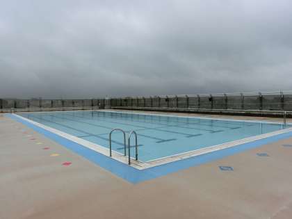 本日の夏期休業中の水泳指導は、水温、気温の合計50度の条件を満たさず、天候の回復も見こめないため、全日中止といたします。お子さんへの連絡をよろしくお願いいたします。