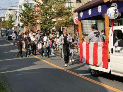 子供太鼓は、昼過ぎに天祖神社を出発し、