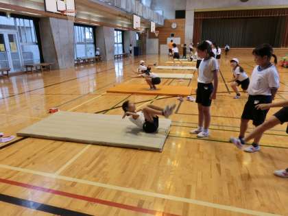 前転・開脚前転・後転・開脚後転・側方倒立回転など