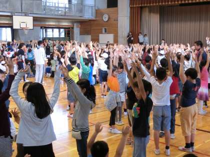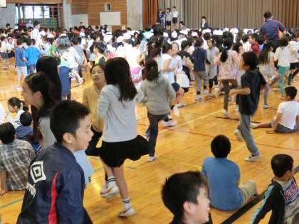 今朝の児童集会は、「ポパイさんが言いました…」ゲームです。