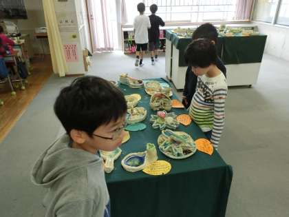 そんな5年生の作品を、4年生が鑑賞しに来ていました。