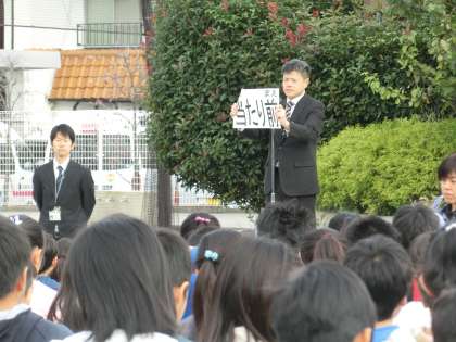 校長先生の話は、新聞への大学生の投稿記事紹介から
