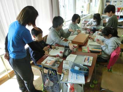 ボーリング調査の地層標本を使って、